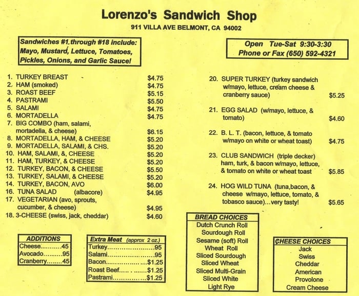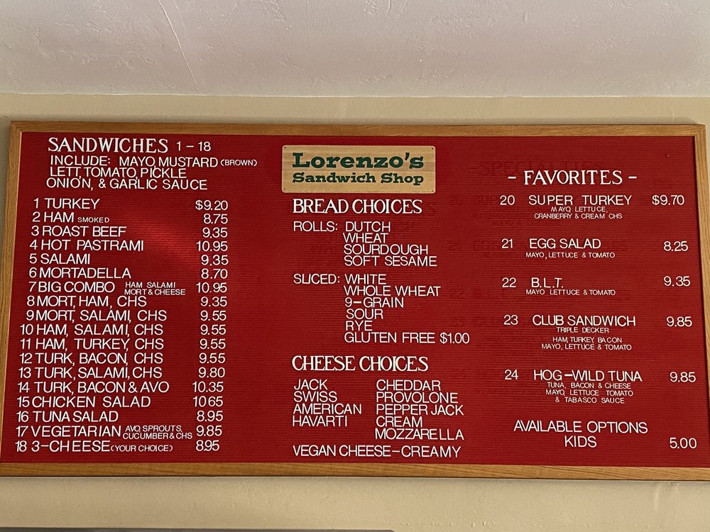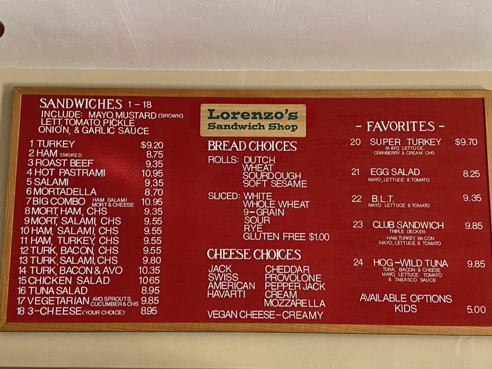 Lorenzo’s Sandwich Shop Menu (Update 2025)